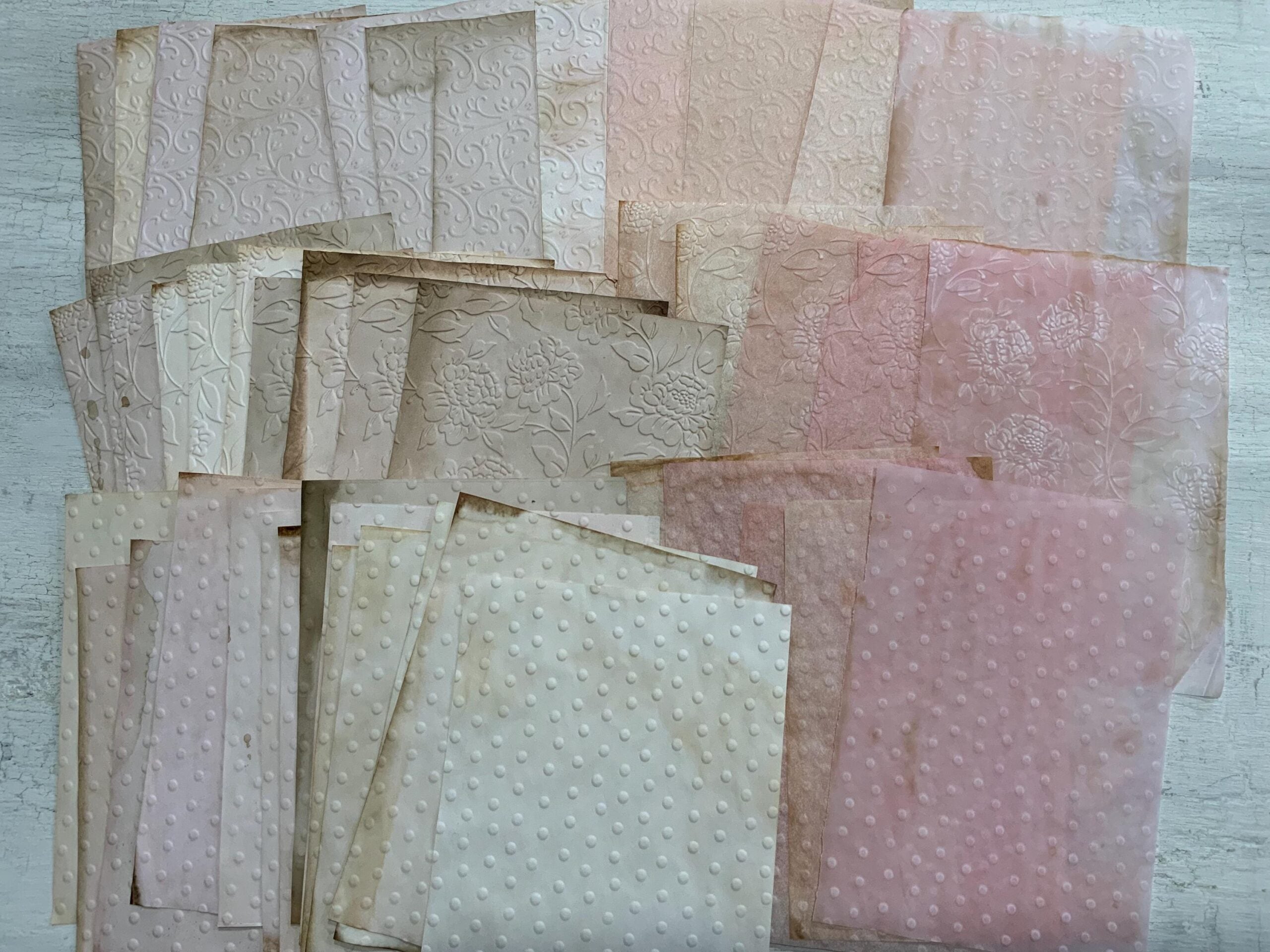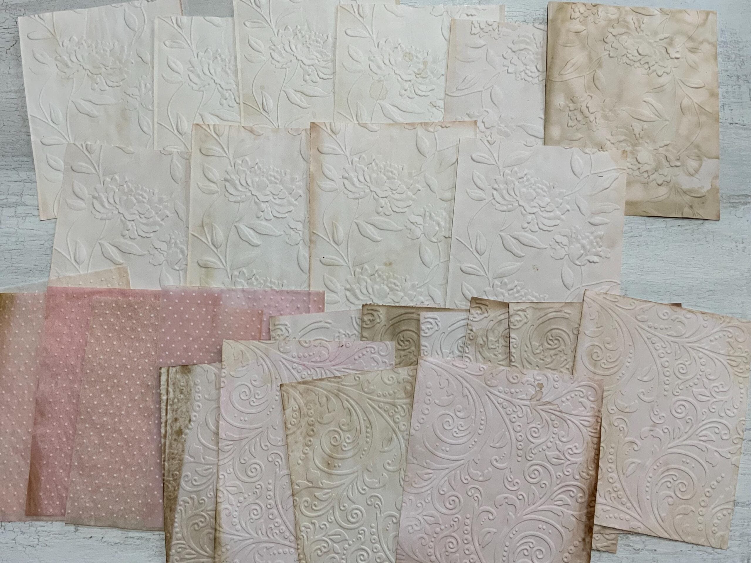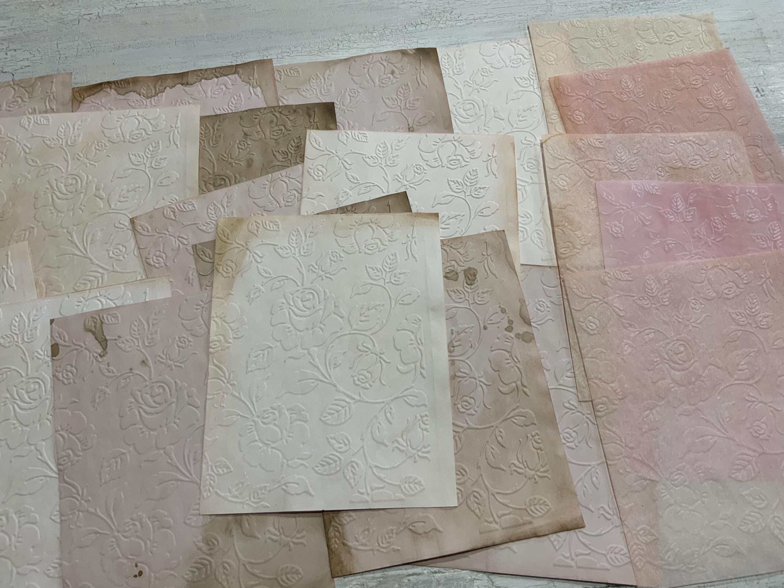 Pink pigments & Coffee stained embossed for you papers/tracing papers bundle. For those of you who do not have the embossing machine and the embossing stencils, after many requests, I am now offering a kit of my favorite embossed designs. The paper is regular copy paper and some tracing paper.