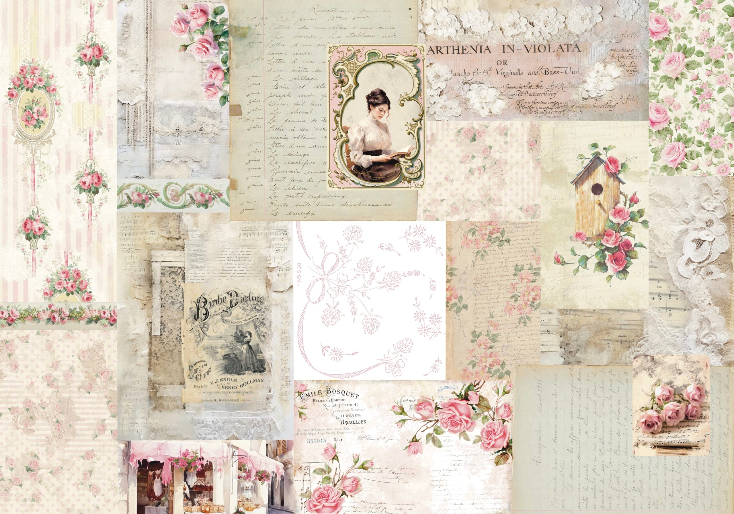 Pink Collage cotton fabric