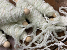 Odulcina mix of fancy yarns rolled around a wood peg or a wood peg.