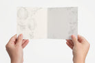 Comes with a white envelope. Faded printed designs inside the card.