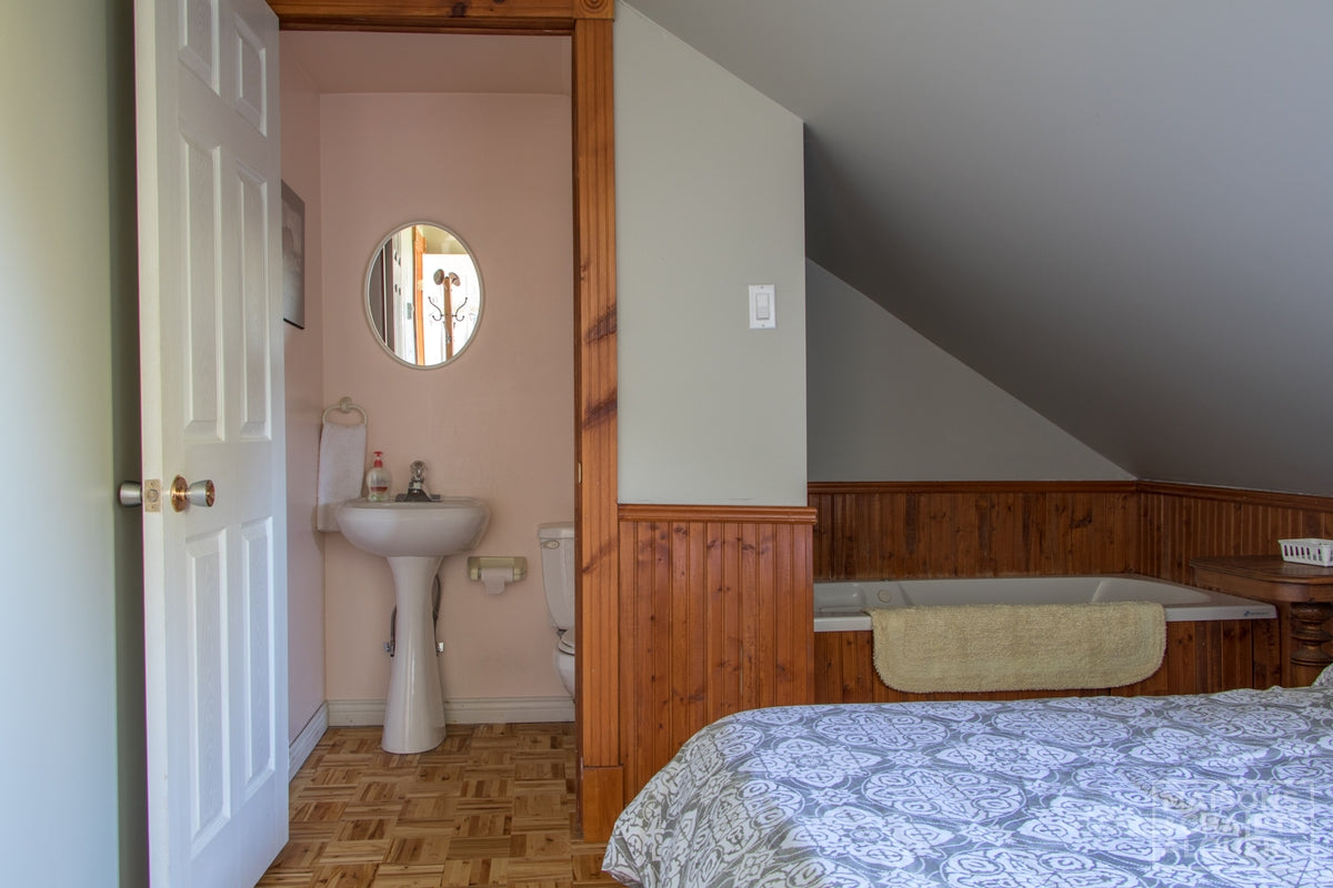 The bedroom is located on the 2nd floor, we need to use the stairs to get there.