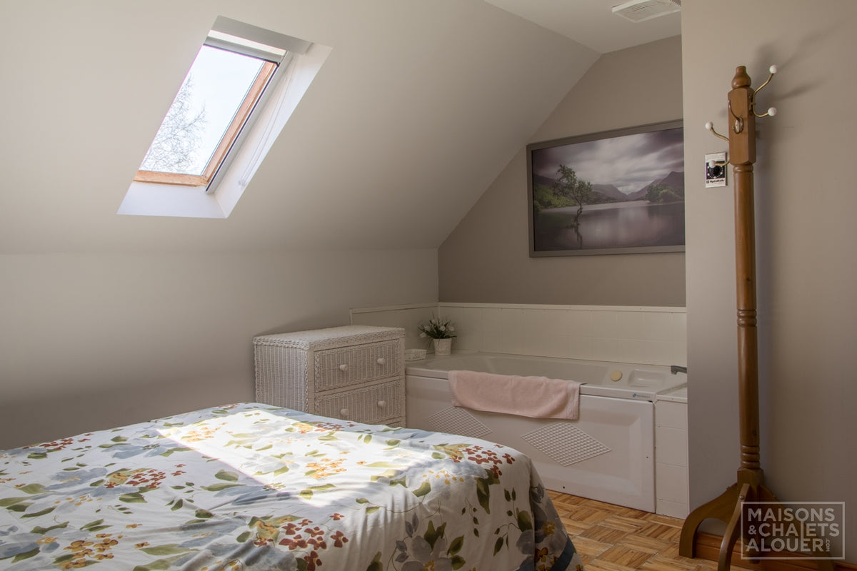 The bedroom is located on the 2nd floor, we need to use the stairs to get there.