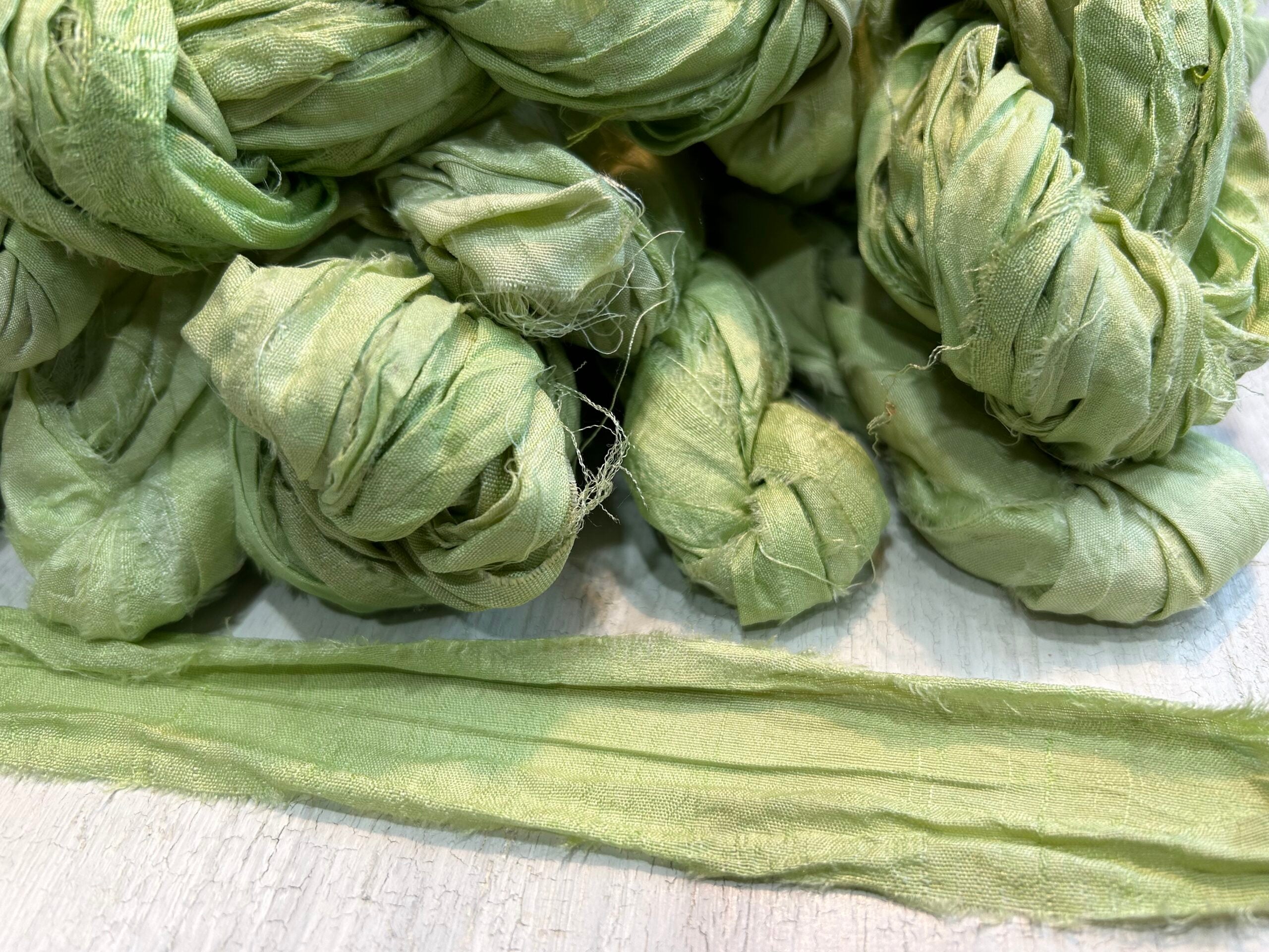 Sari silk ribbon by 5m. Handmade dyed in India. Please expect some imperfections as typical in the sari silk ribbons industry.