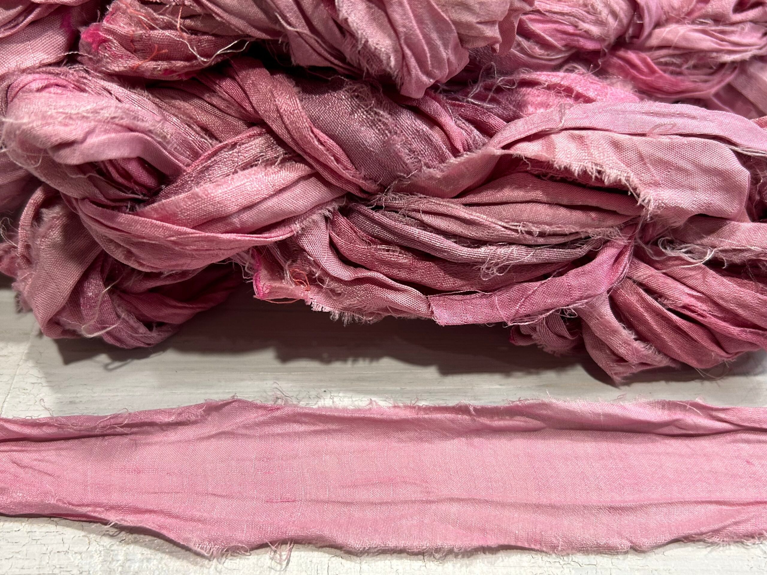 Sari silk ribbon by 5m. Handmade dyed in India. Please expect some imperfections as typical in the sari silk ribbons industry.