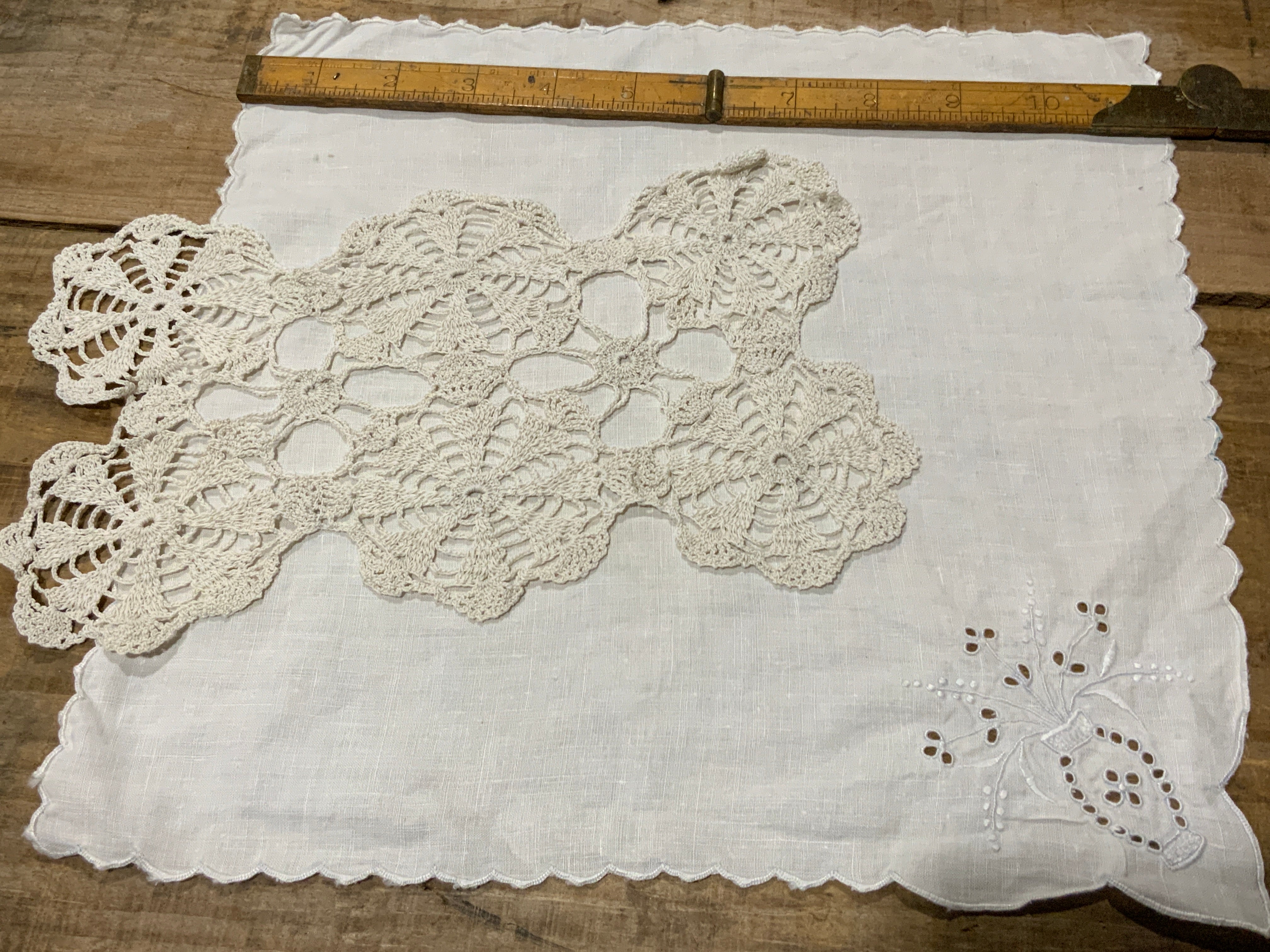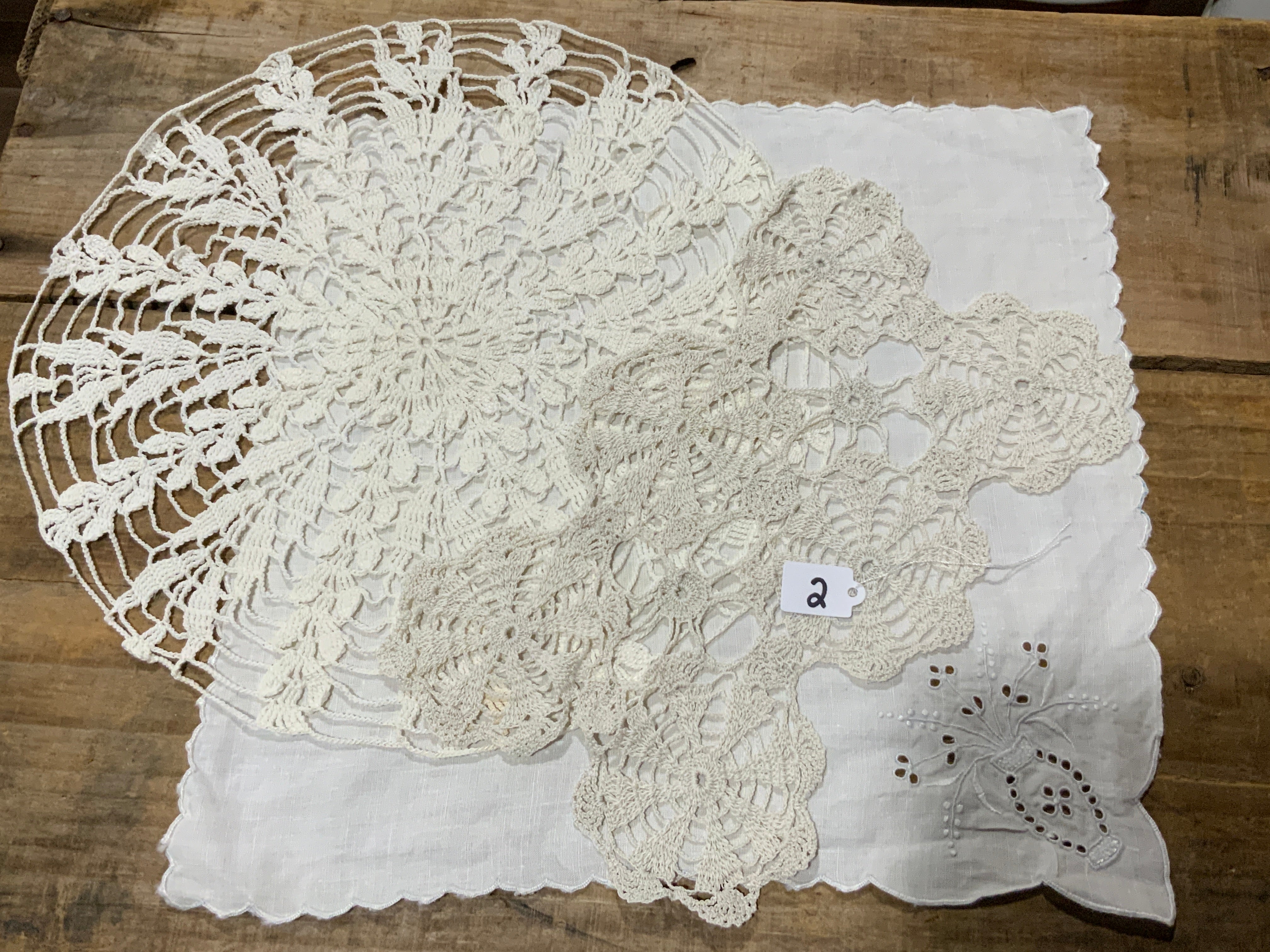 Set of 2 doilies + a cotton hankerchief