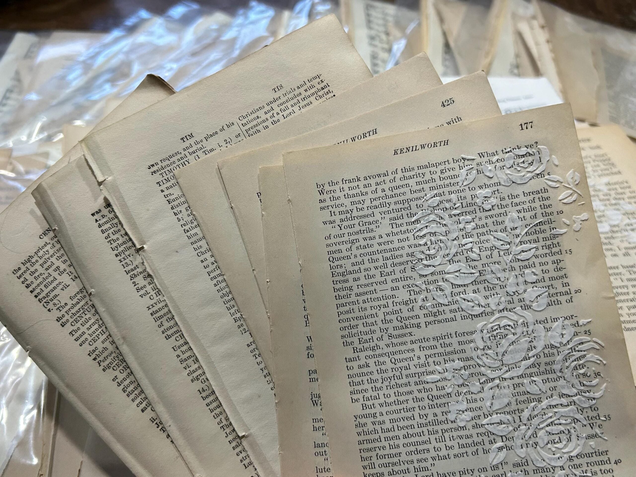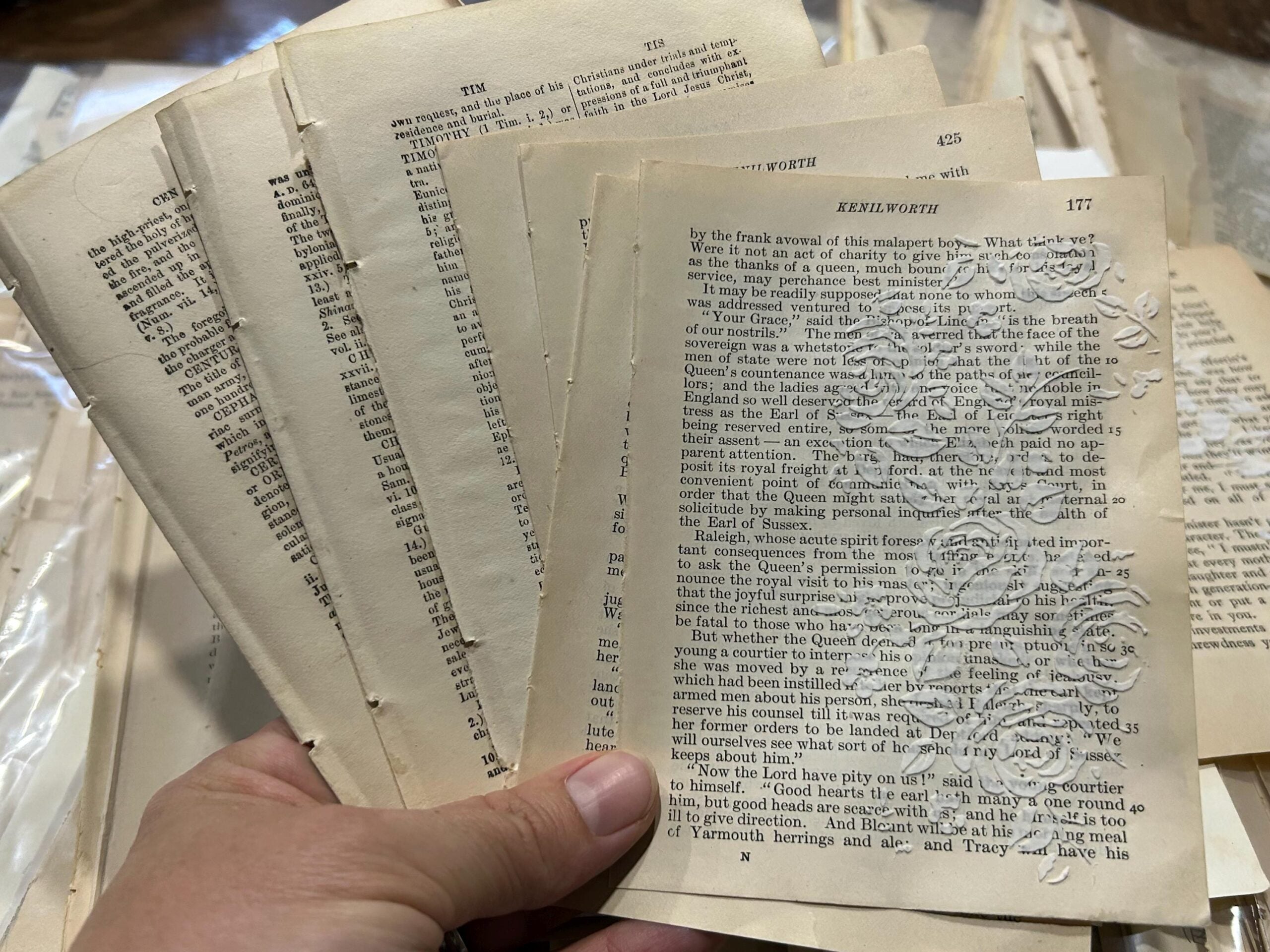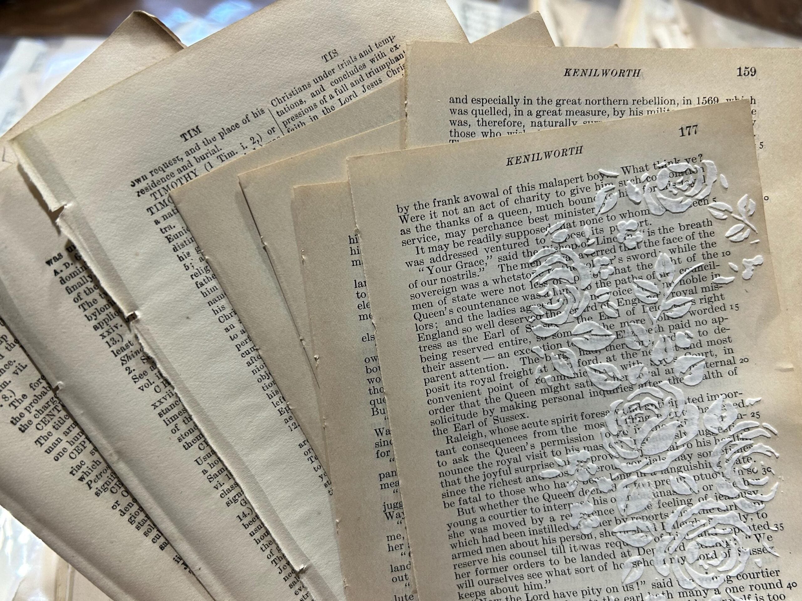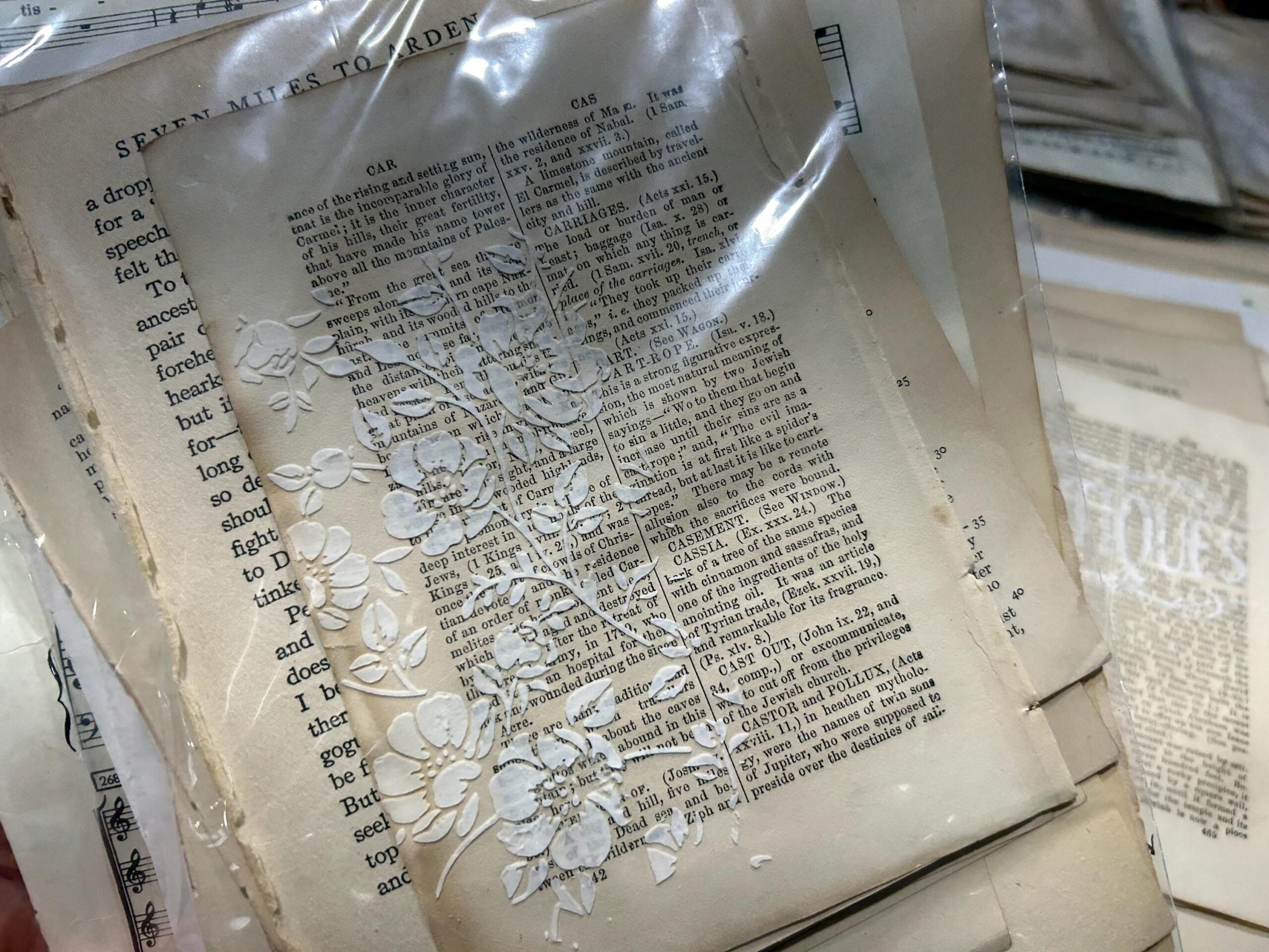 Includes 2 book pages (1 small & 1 medium size) that has stencil applied modelling paste on.