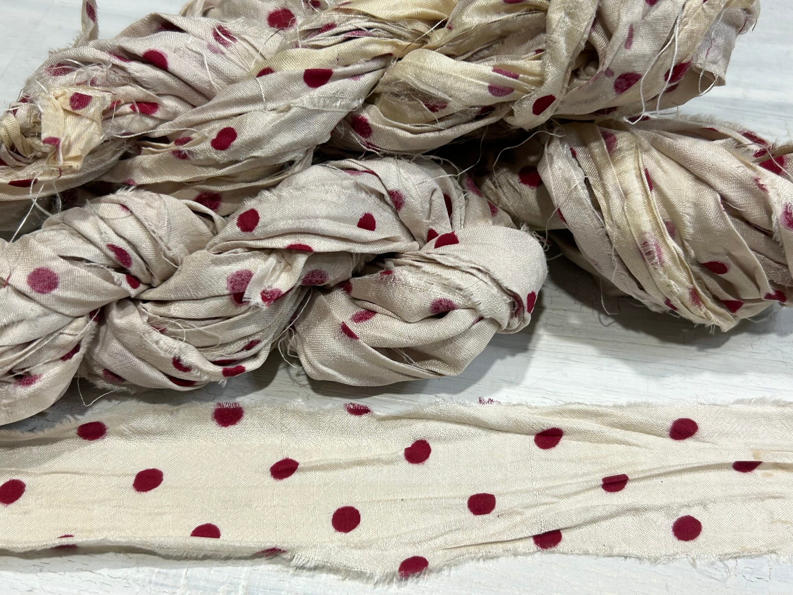 Sari silk ribbon by 5m. Handmade dyed in India. Please expect some imperfections as typical in the sari silk ribbons industry.